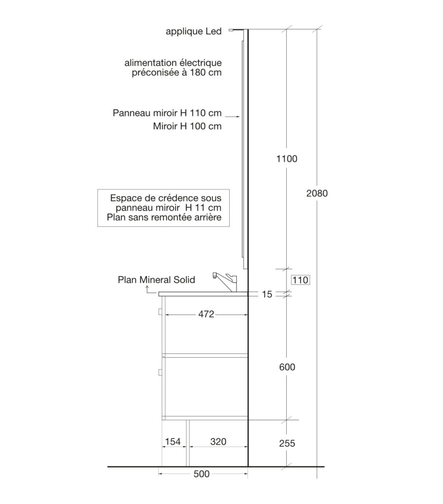Miroir sur panneau décor démontable hauteur 110 cm.